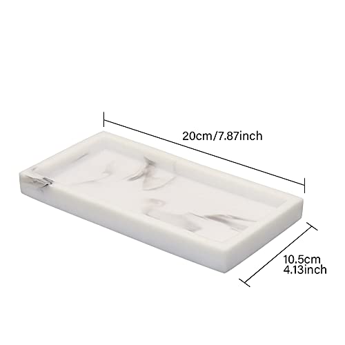 Vassoio in resina marmo, piatto rettangolare antiscivolo marmo con struttura in marmo vassoio bagno, vassoio tavolino cucina, per candele, sapone, asciugamani, porta profumo, porta gioielli (bianco)