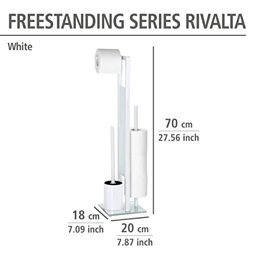 Vassoio WC, scopino e porta rotolo di carta igienica Wenko Rivalta, acciaio inossidabile bianco e vetro temperato, 23,5 x 70 x 18 cm