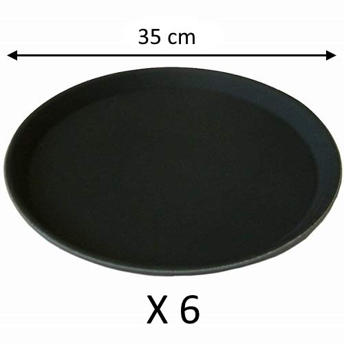 Vassoio da bar e da servizio rotondo e nero, antiscivolo in polipropilene robusto e solido, confezione da 6 pezzi, ristorazione, birrificio, bistrot, caffè ristorante (3 misure disponibili) (35 cm x 6 cm)