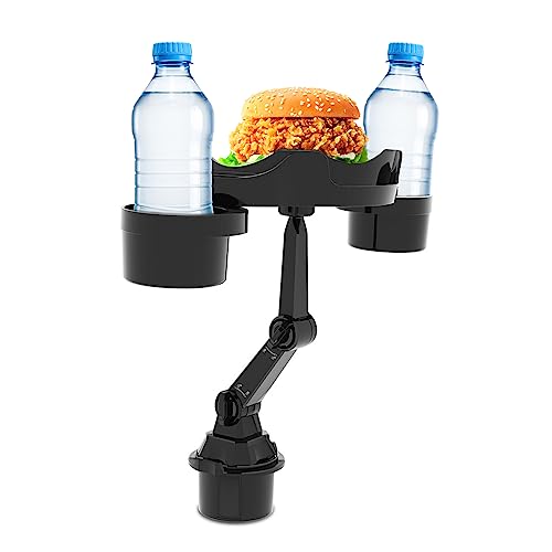 【Design regolabile a 360°】 Il vassoio portabicchieri dell'auto può essere ruotato di 360°, in modo da poter ruotare facilmente il vassoio tra conducente e passeggero. Inoltre, può essere allungato su e giù in modo da poter regolare la posizione perfetta.