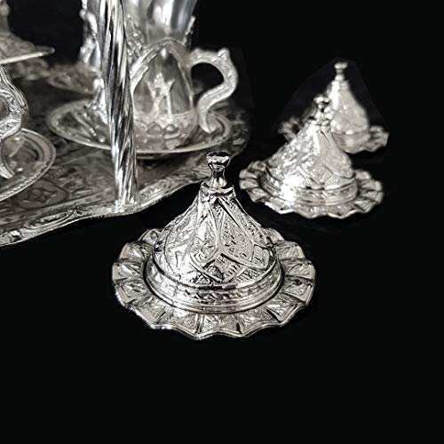 Set vassoio e tazze con piattini da 6, ottomano turco, in argento e in ottone per tè, caffè, set C.