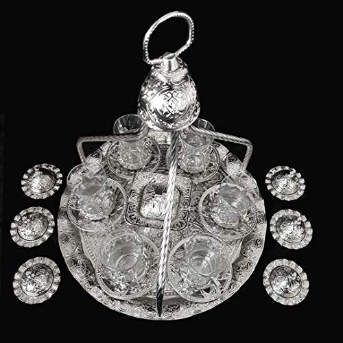 Set vassoio e tazze con piattini da 6, ottomano turco, in argento e in ottone per tè, caffè. Migliore venditore Regno Unito, set C