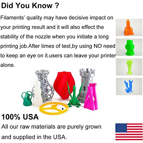 Materiale USA Materiali puramente ecologici: bobina trasparente da 1 KG (circa 2,20 libbre) Diametro del filamento di 1,75 mm (Precisione dimensionale +/- 0,02 mm), filamento di stampante 3D con acido polilattico sigillato sottovuoto con disseccante