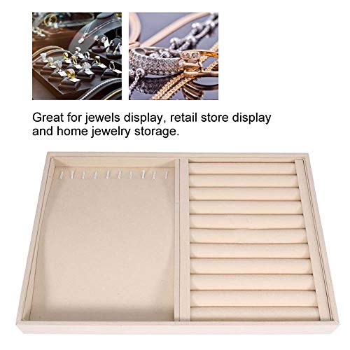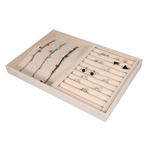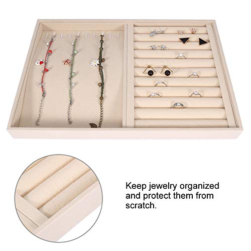 Vassoio di visualizzazione di gioielli, orecchini Vassoio di immagazzinaggio Vassoio di supporto per anelli Orecchini Ear Studs Jewelry Display Stand Storage Box Holder Organizer(Beige Flannel)