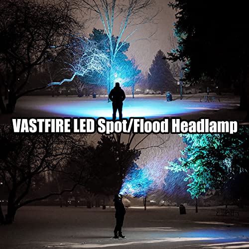 VASTFIRE XHP90 Faro LED Ricaricabile con Fascio Regolabile con Luce Rossa Lampeggiante Posteriore Faro Regolabile a 90 Gradi per Caccia, Pesca, Riparazione Auto, Campeggio, Casa