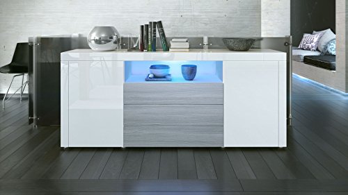 Vaterartikel Santiago - Credenza buffet, Blanc haute brillance / Avola-Anthracite, sans l'éclairage LED