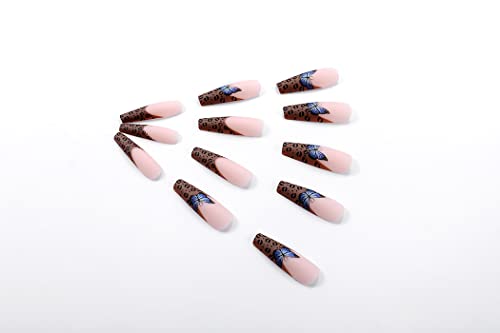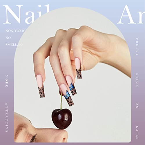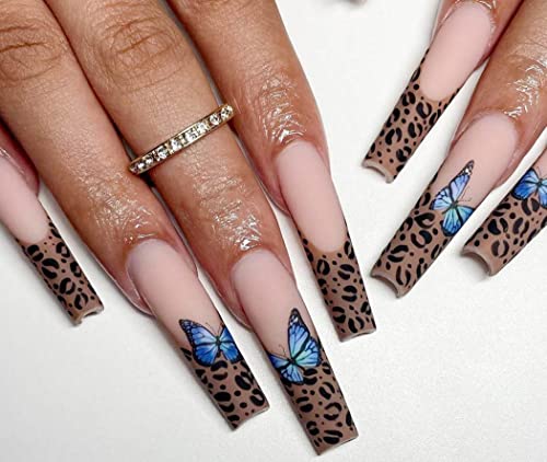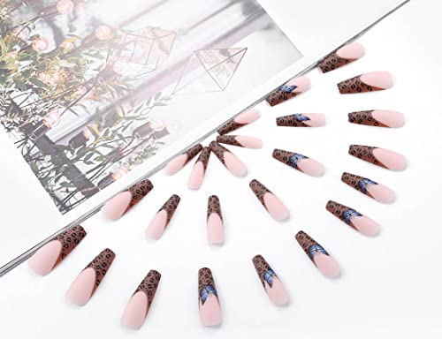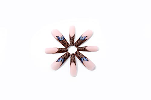 Vatocu Coffin Matte Unghie Finte Farfalla Lunga Unghie Finte Stampa Leopardo Stampa sulle Unghie Stick Acrilico sulle Unghie per Donne e Ragazze (24 pezzi)