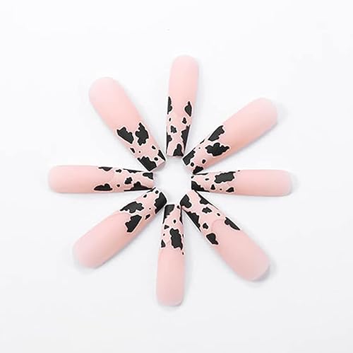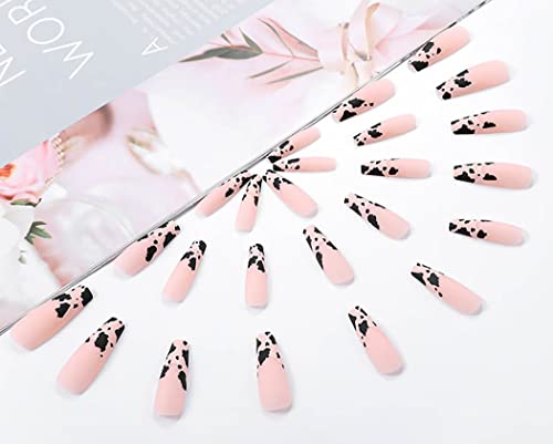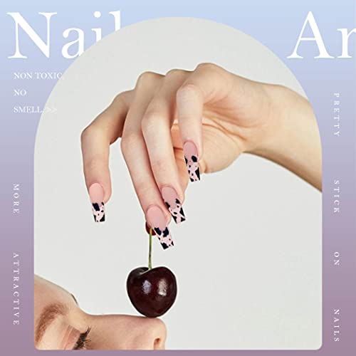 Vatocu Coffin Unghie Finte Opache Marrone Lunghe Unghie Finte Stampa Mucca Sulle Unghie Stick Acrilico Sulle Unghie per Donne e Ragazze (24 pezzi)