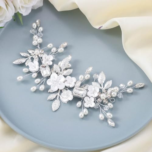 Gli accessori per capelli da sposa da donna sono fatti a mano con filo delicato in argento, dal design elegante, questo è un accessorio perfetto per capelli per la tua occasione speciale, matrimonio, laurea o per damigelle.