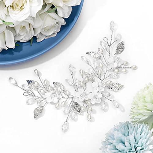 Vatocu Fiore sposa capelli da sposa vite argento cristallo copricapo perla accessori per capelli da sposa per donne e ragazze.