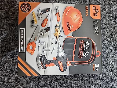 Set di attrezzi per bambini da 28 pezzi - Include borsa degli attrezzi, trapano elettrico giocattolo, cappello sicuro, martello per bambini, pinze, chiave regolabile, cacciavite, 6 viti e 6 dadi ecc. È adatto ai genitori per insegnare ai bambini la funzione di questi strumenti in un ambiente sicuro. Lasciateli giocare da soli o con i loro amici per molto tempo e non si annoieranno mai.