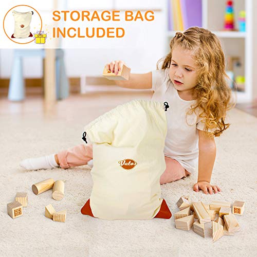 VATOS Blocchi da Costruzione in Legno Toddlers, 75 Pezzi Blocchi da Costruzione in Pino Massiccio Prefetto Giocattoli Montessori in Legno per 1 2 3 4 5 6+ Anni Bambini Ragazzi e Ragazze Regalo