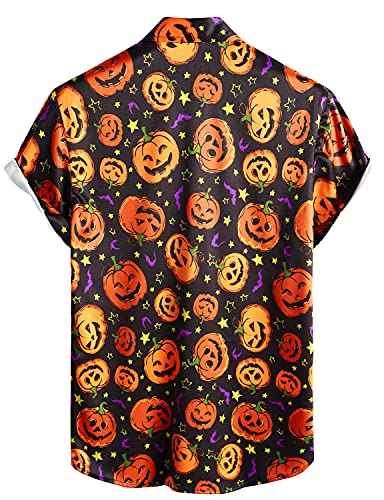 VATPAVE Camicia da uomo a maniche corte con bottoni a zucche di Halloween, Nero viola, S
