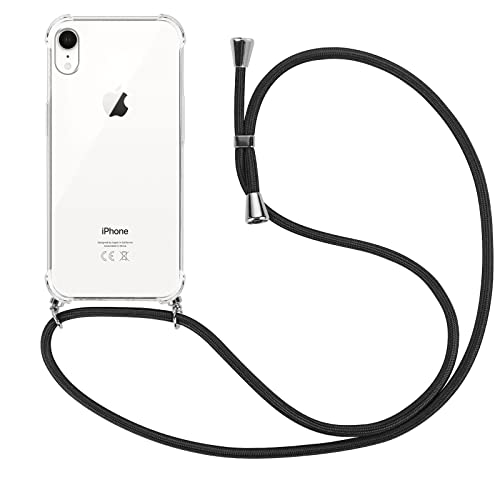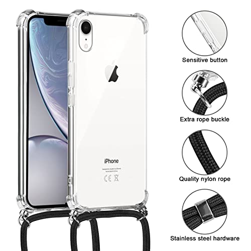 Vauki Cover con Cordino per iPhone XR, Custodia Trasparente Silicone con Collana Tracolla per iPhone XR 6.1", Case Tracolla Antiurto AntiGraffio, Nero