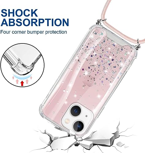 Vauki Cover con Cordino per Oppo A15/A15s, Cover con Laccio Glitter Glitterate con Collana PC Case Antiurto con Corda Tracolla Sparkle Cover per Oppo A15,Rosa
