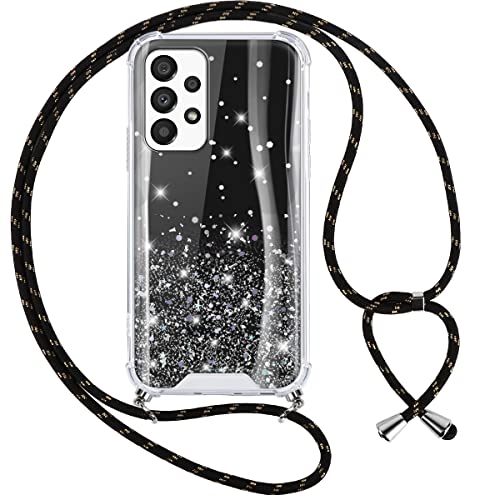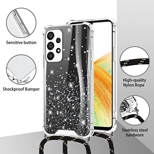 Vauki Cover con Cordino per Samsung Galaxy A33 5G, Cover con Laccio Glitterate con Collana, PC Case Antiurto con Corda Regolabile Tracolla Sparkle Femminile per Samsung A33 5G 6.4", Nero