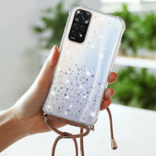 Vauki Cover Glitter con Cordino per Xiaomi Redmi Note 11/11S 6.43", Custodia Trasparente Glitterate con Collana PC Case Antiurto con Corda Regolabile Tracolla Sparkle per Redmi Note 11, Trasparente