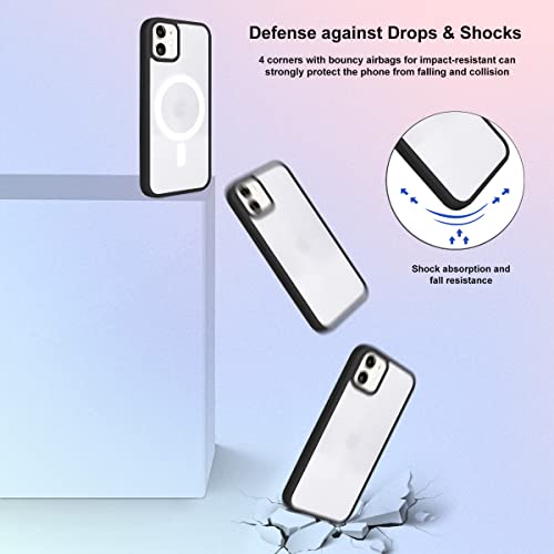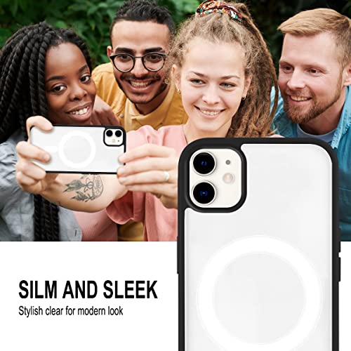 Vauki Cover Magnetica Trasparente per iPhone 11 6.1" con Ricarica MagSafe con 2 Pezzi Vetro Temperato, Custodia Protettiva in Silicone Antiurto, Case Bordo in TPU Morbido e Posteriore PC Rigido, Nero
