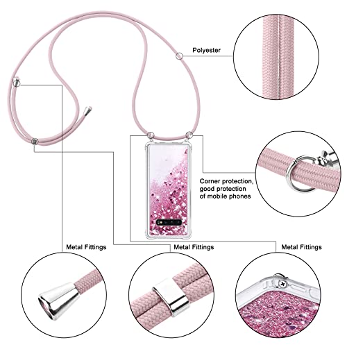 Vauki Cover Samsung Galaxy S10 Plus con Cordino,Trasparente Glitter Liquido Antiurto Brillantini Tracolla Custodia,Silicone Bumper Laccio Sabbie Donna Protettivo Case per Samsung S10 Plus,Rosa
