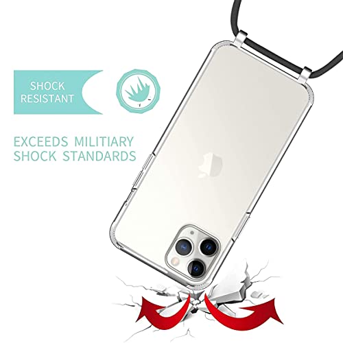 Vauki Cover Trasparente con Cordino per iphone 11 Pro Max 6,5" con 1 x Vetro Temperato, Custodia con Regolabile Collana, Morbido Silicone Leggero Soft TPU Bumper Antiscivolo Case, Nero