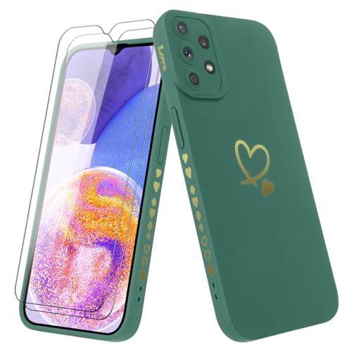 Vauki Cover con 2 Vetro Temperato per Samsung Galaxy A23 5G, Custodia con Amore Cuore per Donna TPU Silicone Morbido Antiurto AntiGraffio Case Compatibile con Samsung A23 5G,Verde