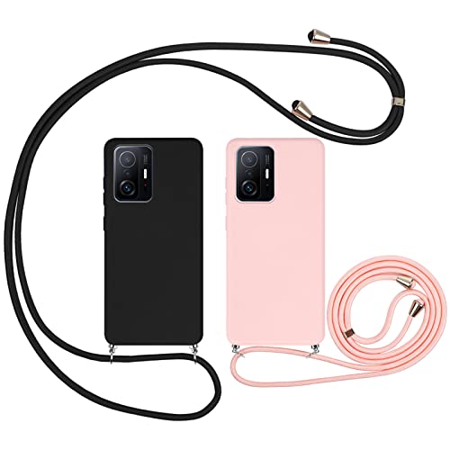 Vauki Cover per Xiaomi 11T/Xiaomi 11T Pro 5G 6.67" con Cordino [2 Pezzi],Custodia Morbido TPU Silicone con Laccio Tracolla Regolabile,Antiurto Anti-Graffio Ultra-Sottile Protettiva Case,Nero e Rosa