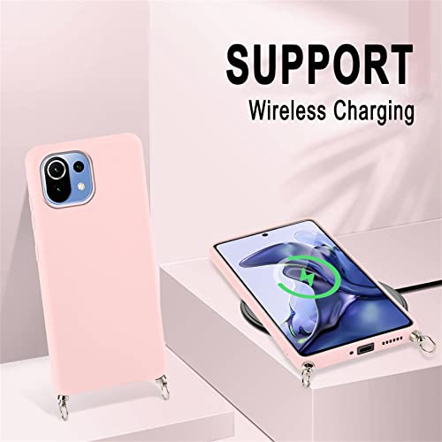 Vauki Cover per Xiaomi 11 Lite 5G NE/Mi 11 Lite 4G/5G 6.55" con Cordino [2 Pezzi],Custodia Morbido Silicone con Laccio Tracolla Regolabile,Antiurto Ultra-Sottile Protettiva Cellulare Case,Nero e Rosa