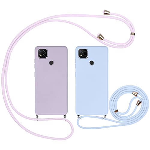 Vauki Cover per Xiaomi Redmi 10A/Redmi 9C/Redmi 9C NFC 6.53" con Cordino [2 Pezzi],Custodia Morbido Silicone con Laccio Tracolla Regolabile,Antiurto Ultra-Sottile Protettiva Cellulare Case,Viola e Blu