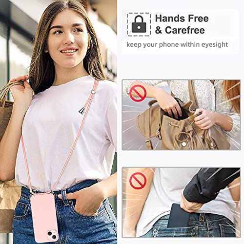 Vauki Custodia per iPhone 13 Cover con Cordino, Rosa Silicone Antiurto TPU Morbido Case Corda Collana Necklace Regolabile Stylish con Catena Ultra Sottile Cover per iPhone 13 6.1"