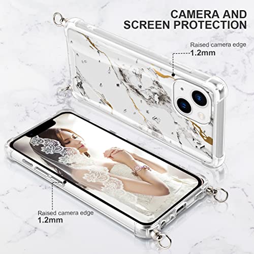 Vauki Glitter Cover con Cordino per Apple iPhone 13 6,1", Morbido Silicone Custodie Marmo Platino Disegno, Rigida PC Bumper Antiurto Case con Regolabile Laccio Tracolla per iPhone13, Marmo 3