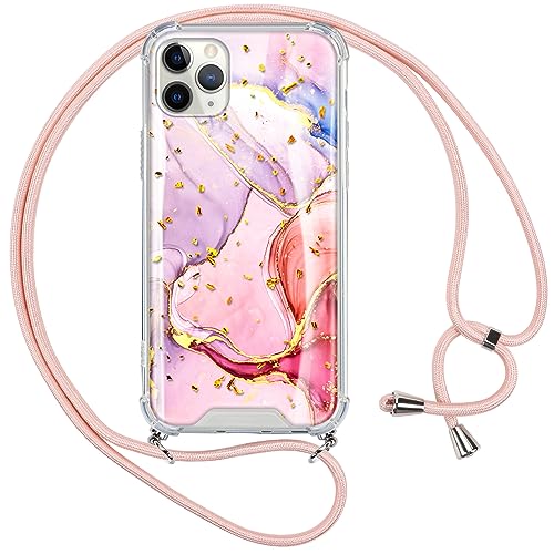 Vauki Glitter Cover con Cordino per iPhone 11 Pro MAX 6,5", Morbido Silicone Custodie Marmo Platino Disegno,Rigida PC Bumper Antiurto Case con Regolabile Laccio Tracolla per iPhone11 Pro MAX, Marmo 1