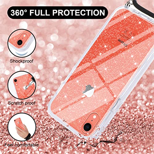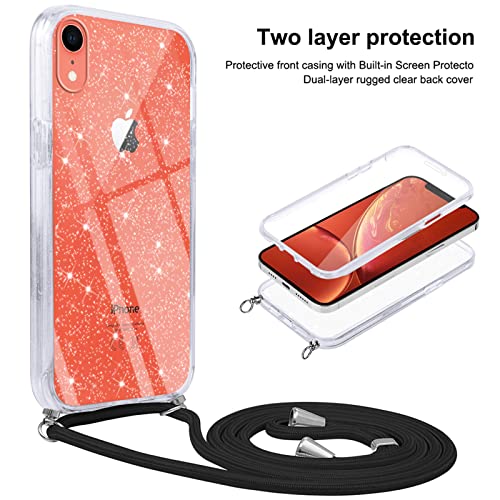 Vauki Glitter 360 Gradi Cover per iPhone XR con Cordino e Protezione Schermo,Custodia Silicone Trasparente con Collana Laccio Tracolla Nero,Antiurto Brillantini Protettiva Case per iPhone XR 6.1"