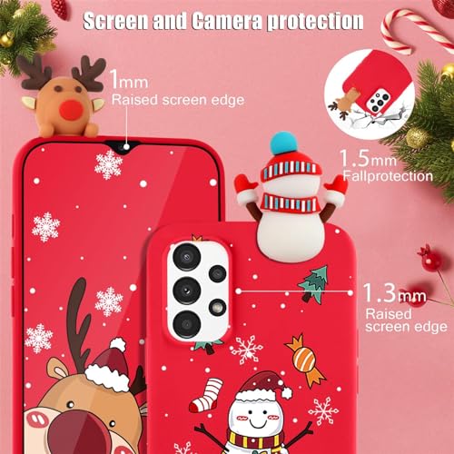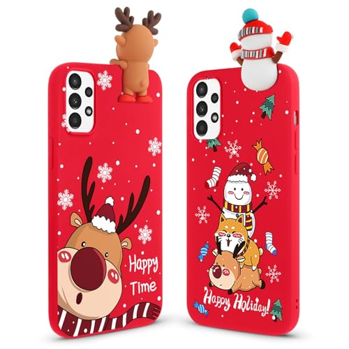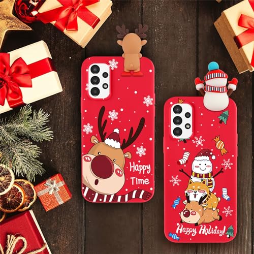 Vauki Natale Cover per Samsung Galaxy A13 4G [2 Pezzi] Rosso Silicone Custodia con Christmas Cervo Motivo, Antiurto TPU Regalo Natale Donna Case con 3D Bambola per Samsung A13 4G, Renna Natalizia