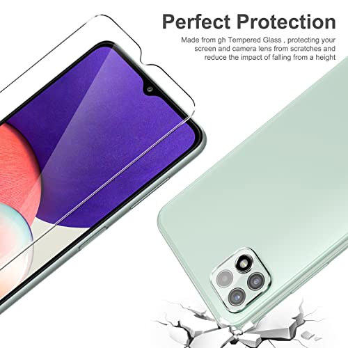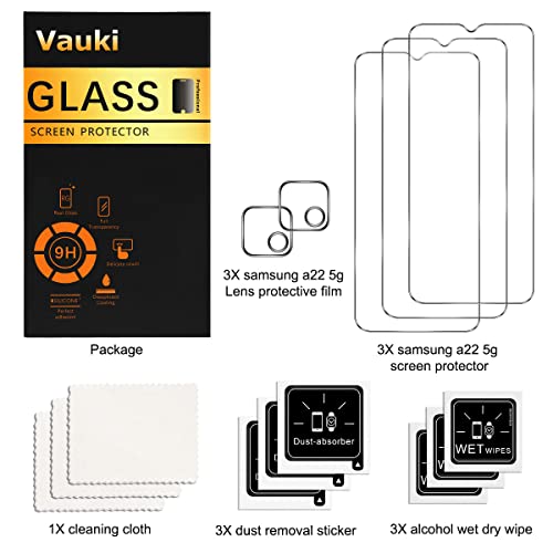 Vauki [5 Pezzi 3 Pcs Pellicola Protettiva Compatibile con Samsung Galaxy A22 5G 6.6",9H Durezza HD Trasparente Vetro Temperato + 2 Pcs Protettivo Fotocamera Protezione Lente, per Samsung A22 5G