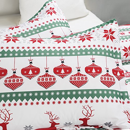 Copripiumino e federe coordinate con motivo natalizio a fiocchi di neve, dona un tocco di stile alla tua camera durante il periodo natalizio.