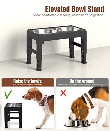 VavoPaw Ciotole per Gatti Cani Rialzate e Pieghevole, 2 Ciotole in Acciaio Inossidabile e Piedini Antiscivolo Scaffale Ciotola per Animali Mangiatoia Altezza Regolabile 8-30 cm, Nero