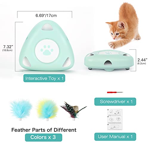 VavoPaw Giochi Gatti Automatici con 3 Piume Staccabili, Giocattoli Interattivi per Gatti Adulti Teaser Giocattolo Intelligente Triangolare Mantieni Agile Soddisfa l'Istinto di Caccia - Azzurro