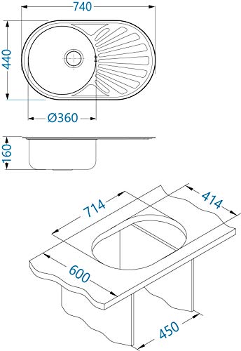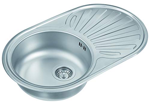 VBChome Lavello da incasso 74 x 44 in acciaio inox di alta qualità, rotondo, con ripiano a sinistra e destra, classico lavello da cucina, design moderno (sinistra)