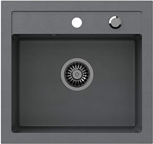 ✅ Moderno lavello in granito massiccio con 80% di granito in aggiunta 20% resina con valvola a cestello rotonda per aprire e chiudere automaticamente lo scarico. Materiale estremamente duro, antigraffio e colorato: la superficie è facile da pulire grazie a una superficie liscia e sigillata.