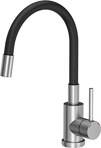VBChome Rubinetto per lavello in acciaio inox, flessibile, girevole a 360°, in acciaio inox spazzolato, rubinetto da cucina, monocomando, miscelatore flessibile