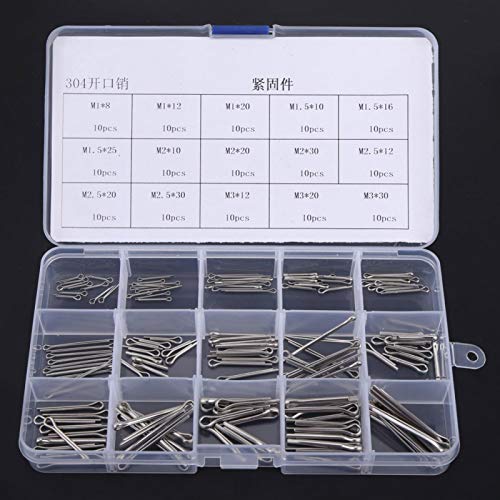 VBESTLIFE Split-Cotter Pins, 150Pcs M1-M3 15 Kinds 304 Stainless Steel Split-Cotter Pins Kit