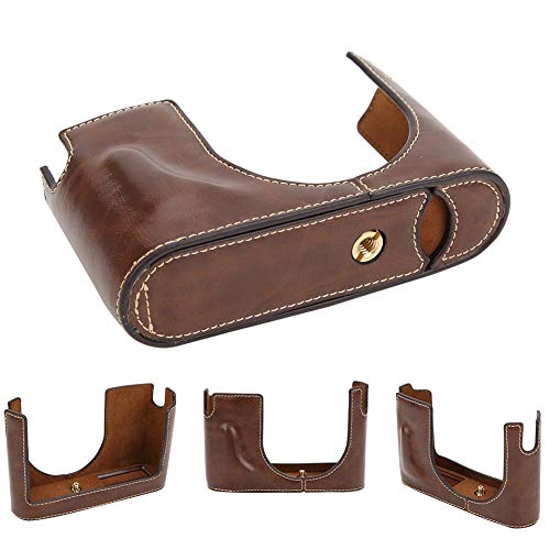 VBESTLIFE Versione con apertura inferiore Custodia protettiva in mezza custodia in pelle PU per fotocamera Leica Q-nera, marrone, caffè (opzionale)(Marrone scuro)