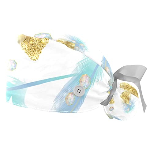 VBFOFBV Berretto da Lavoro da 2 Pezzi con Cappelli a Coda di Cavallo Regolabili con Bottoni per Donna,Diamante Piuma d'oro
