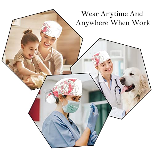 VBFOFBV Cappucci Bouffant Scrub Regolabili 2 Confezioni Copricapo Cappello da Lavoro con Ponytail Pouch Soft Berretto Chirurgico da Infermiera,Peonia Rossa del Fiore della Pittura di Arte