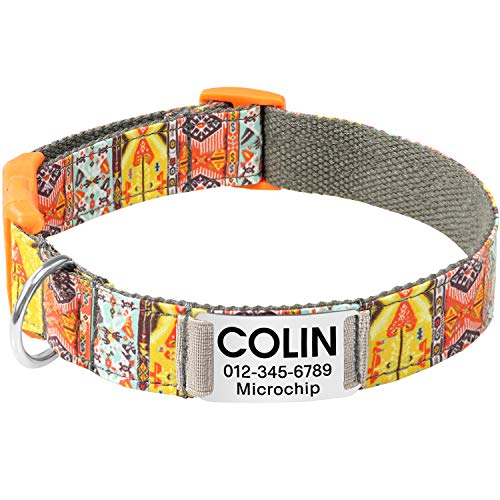 Vcalabashor Collare per Cani Personalizzato Inciso con Nome e Numero di Telefono,Modelli di Moda,Inciso al Laser,Cachi Adatto per Cani di Media Taglia