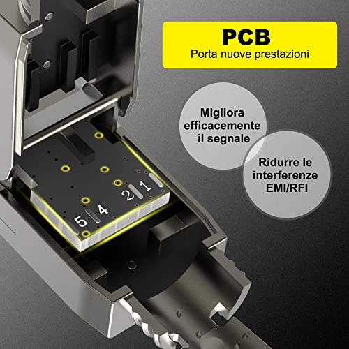 Ambito di applicazione: adatto per cavo di rete CAT7/CAT6A, 22-23AWG, velocità di rete fino a 10 Gbps 600 MHz, supporto PoE, PoE+, POE++