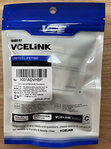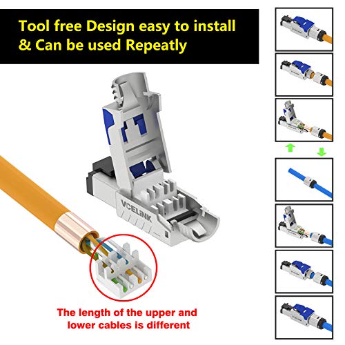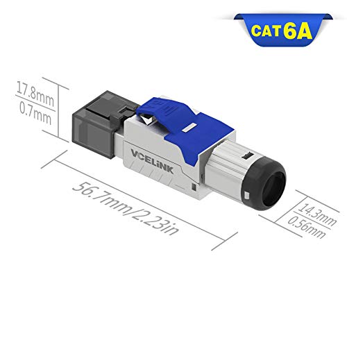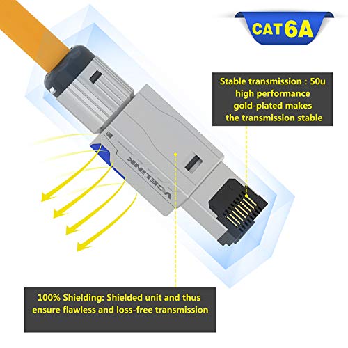 VCELINK Connettori RJ45 Senza Attrezzi Cat6A, Plug RJ45 Schermato per Cat6A Cat6, LAN Cavo di Rete Schermato Custodia in Metallo 2 Pezzi