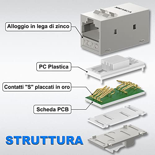 VCELINK RJ45 Accoppiatore Keystone schermato, CAT6A Ethernet Connettore, RJ45 Femmina Femmina per Ethernet Wall Plate e Patch Panel, 2 Pezzo