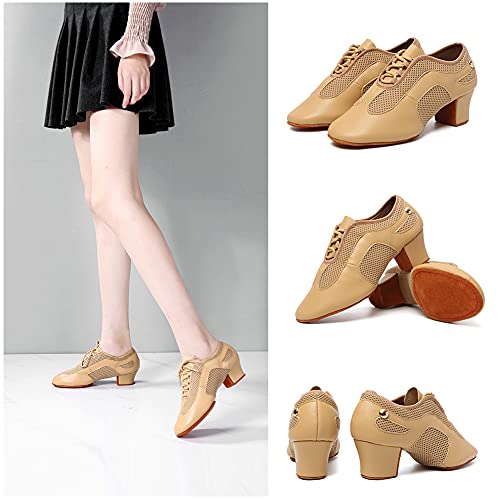 VCIXXVCE Scarpe da Ballo Chiuse da Sala Stringate Tacco Basso Scarpe da Insegnante Danza Latino Tango Salsa per Donna,39 EU