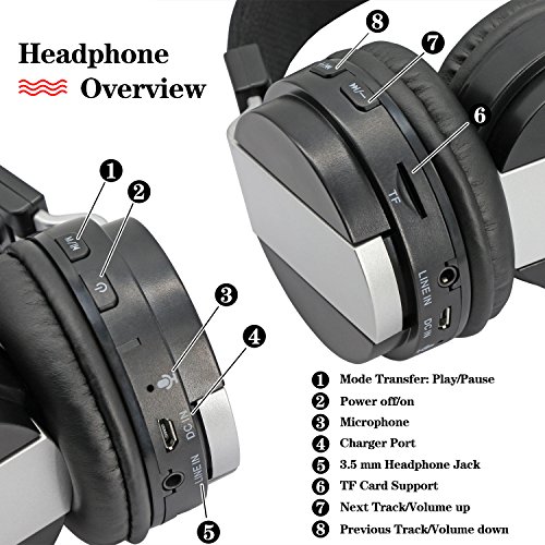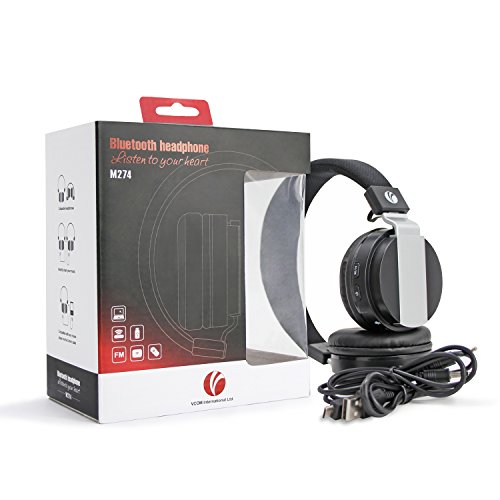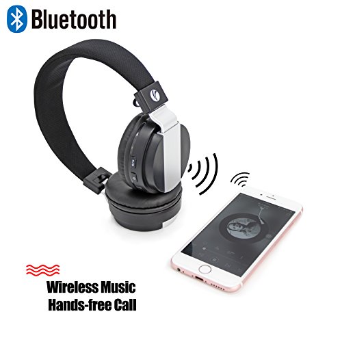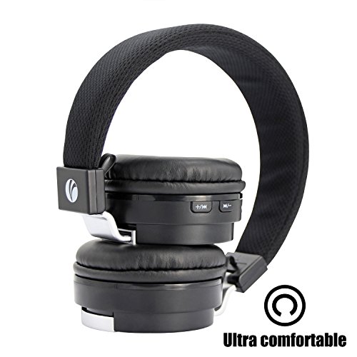 VCOM Cuffie Bluetooth wireless On Ear, Hi-Fi Stereo Cuffie con cancellazione del rumore pieghevole e integrata Microfono, modalità cablata per PC/iPhone/iPad/Cellulari/TV-Black